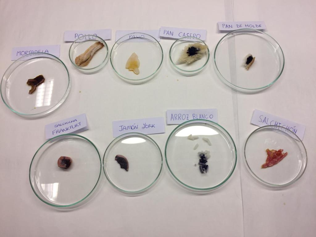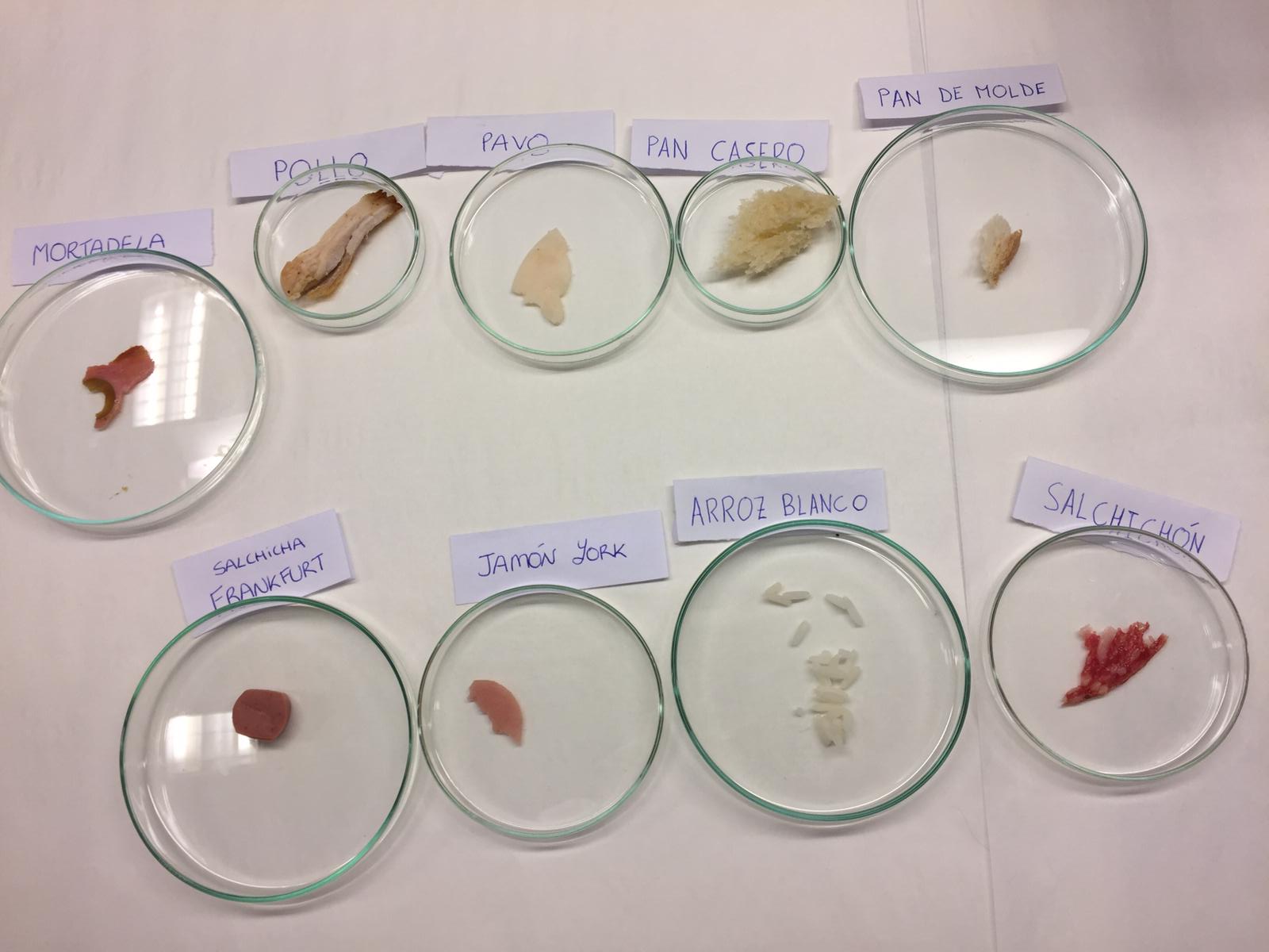 - Se cortan los alimentos con un bisturí y se colocan en una placa petri.