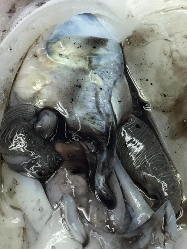 No es un error exactamente pero, al realizar esta práctica, es muy importante mirar por donde se está cortando la sepia ya que se puede romper el saco de tinta.