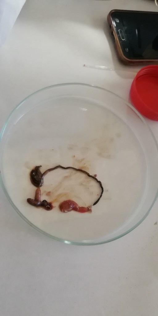 Después de observar al microscopio pudimos corroborar nuestra hipótesis de que los peces de Santa Pola habían ingerido plásticos, ya que estos se encontraban en el interior de sus intestinos.